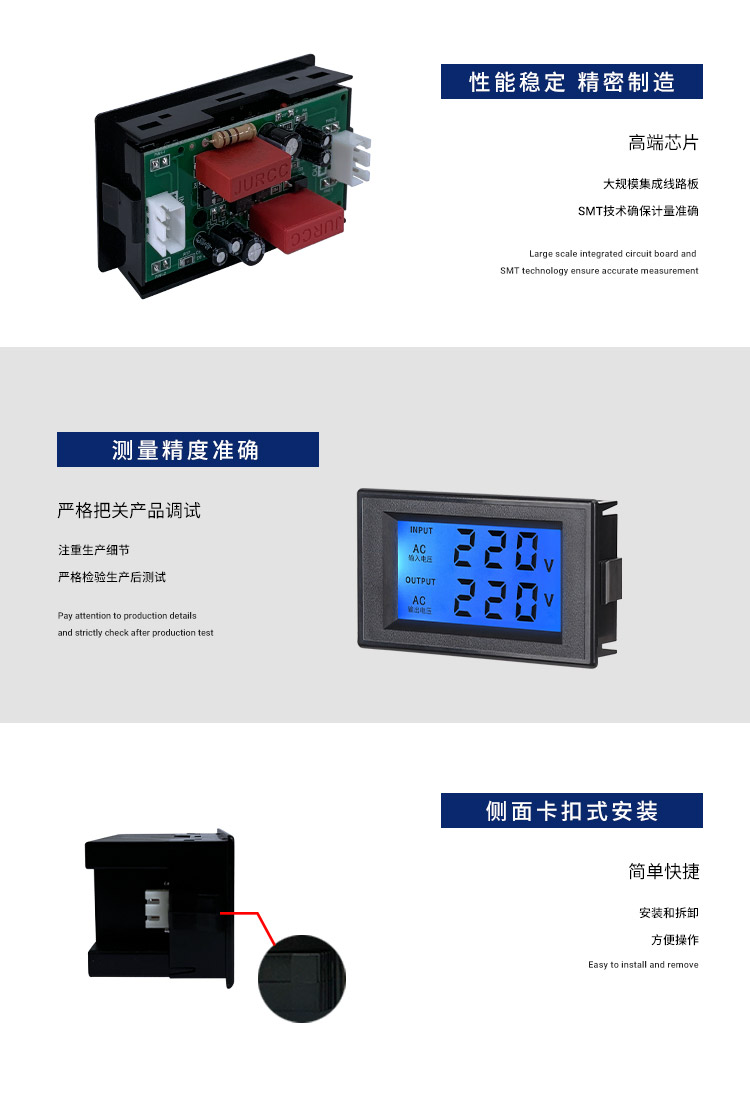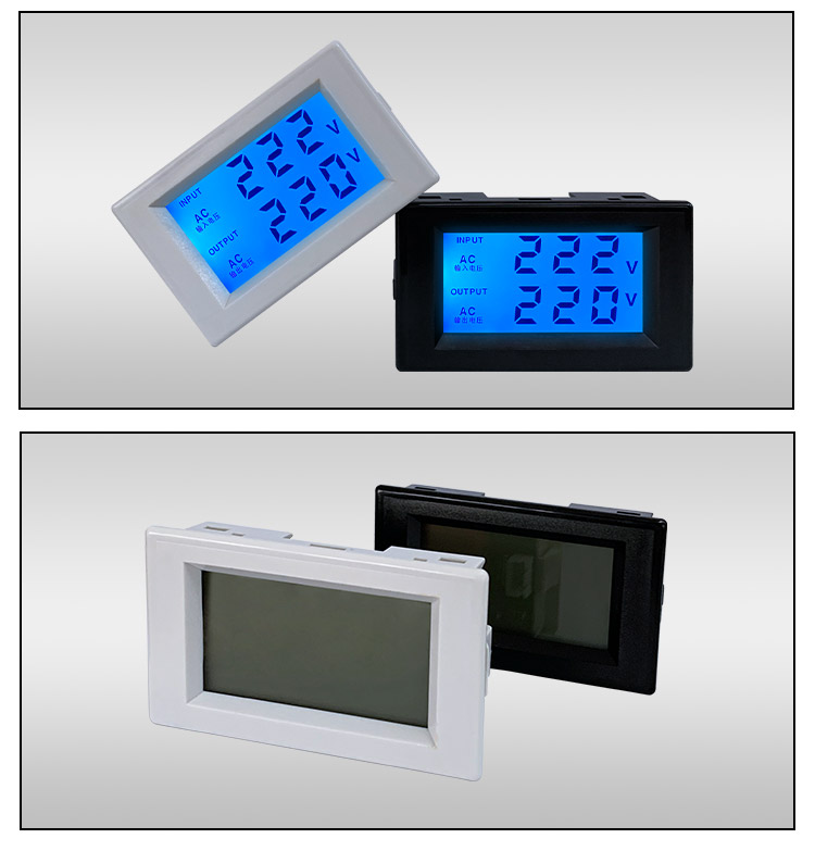 产品名称:交流双电压表 产品屏幕:LCD液晶显示 开孔尺寸:68*38MM 测量范围:AC80-450V